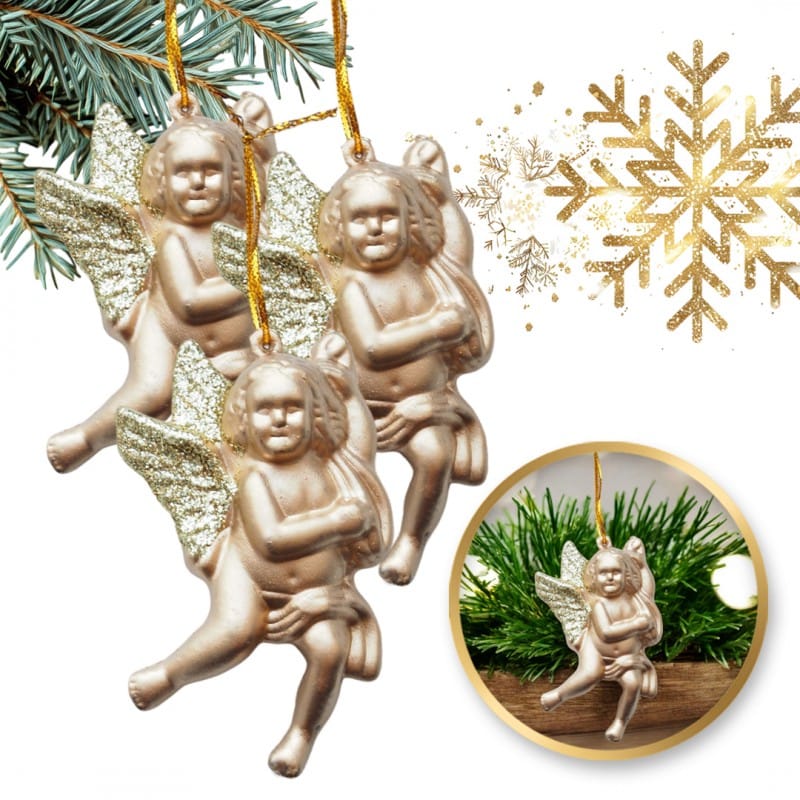 Zestaw ozdób świątecznych- AniołkiZestaw 3 ozdób choinkowychAniołki nadają się jako ozdoba świąteczna do powieszenia na oknie, choince lub jako prezent, a nawet do dekoracji stroików! Wymiary 1sztuki aniołka:Wysokość: 7,5cmSzerokość: 4,5cmWaga 1sztuki aniołka: Materiał: Tworzywo sztuczne5gWymiary opakowania:14cm x 13cmWaga zestawu:17g Poczuj świąteczny klimat! Dodaj swojemu wnętrzu odrobinę zimowej magii.