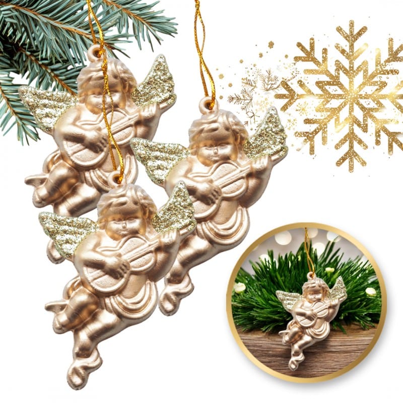 Wiszące Aniołki złote , bombki zestaw 3szt Boże Narodzenie WOZ03