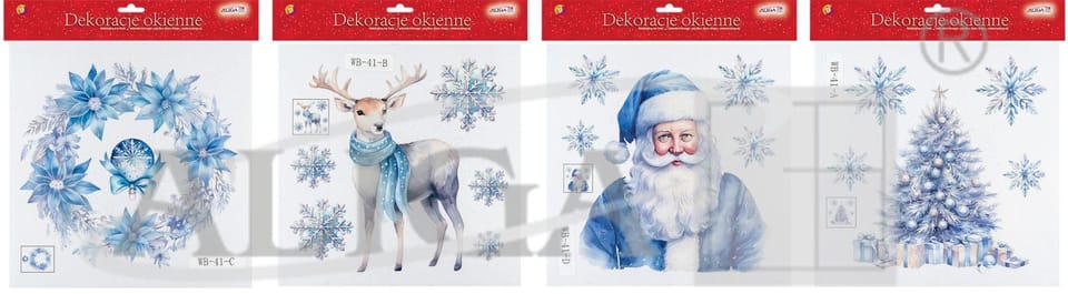 Witraż z brokatem choinka/płatki śniegu wielokrotnego użycia (bez kleju, nie brudzący) WB-41 ALIGA