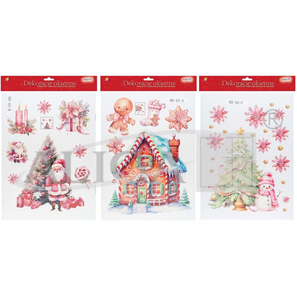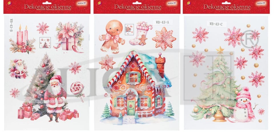 Witraż z brokatem domek z piernika wielokrotnego użycia (bez kleju, nie brudzący) WB-43 ALIGA