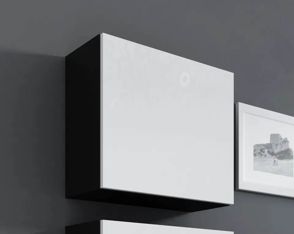 | Dodatkowe informacje: | Szafka podwieszana, Wewnątrz jedna półka zwykła, Zdjęcia zestawów przedstawiają przykładową aranżację z innymi meblami z kolekcji. Pozostałe bryły są dostępne w osobnej sprzedaży., Istnieje możliwość dokupienia oświetlenia szafkowego LED. |