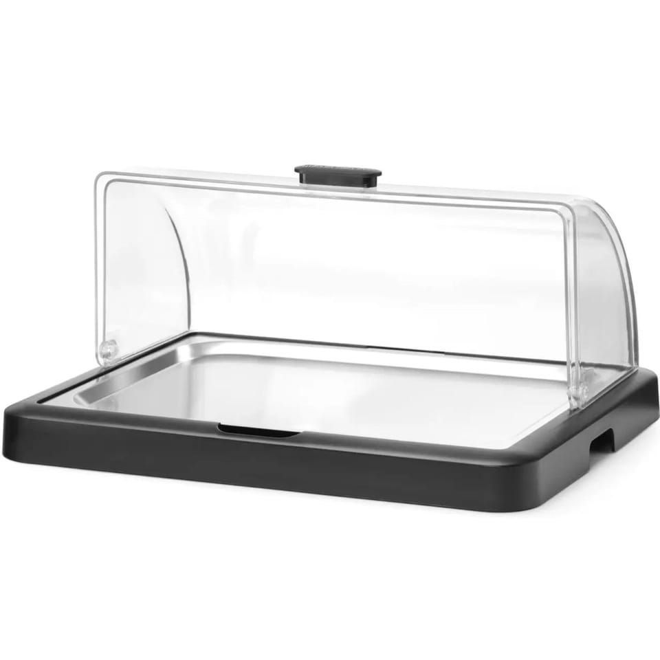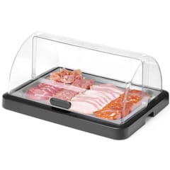- - Otwieranie pokrywy typu roll-topp pod kątem do 90 stopni - swobodna możliwość ponownego uzupełniania potraw na tacach o wymiarach 40 x 30 cm.