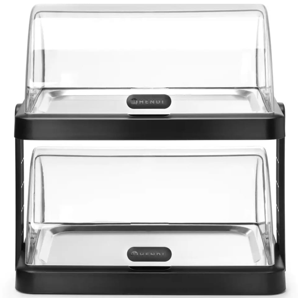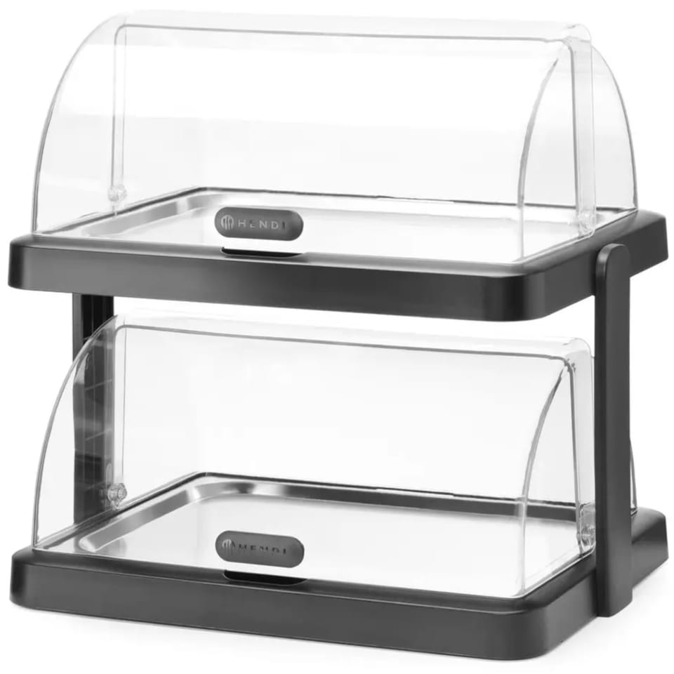 Numer producenta: 871812Podwójna witrynka chłodząca roll-top Duo, marki HENDI jest częścią nagradzanej kolekcji UNIQ z linii Buffet Reinvented. Ma przezroczystą pokrywę, która otwiera się pod kątem do 90deg;, zapewniając doskonałą widoczność oraz łatwy dostęp do potraw. Zaprojektowana, aby idealnie wpasować się w nowoczesne aranżacje bufetowe w restauracjach, kawiarniach, barach; łączy w sobie elegancję z funkcjonalnością. Obudowa z tworzywa ABS łączy nowoczesną elegancję z praktyczną wytrzymałością, a szybki montaż i demontaż sprawiają, że urządzenie doskonale sprawdza się w bufetach hotelowych.Cechy produktu: