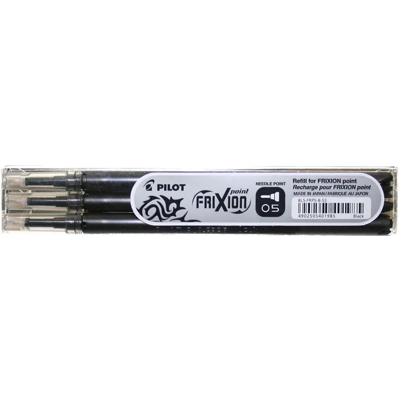 Zestaw 3 sztuk wymazywalnych czarnych wkladów do dlugopisu Pilot Frixion Point 0,5 mm