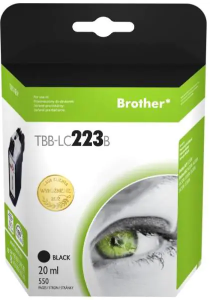 Zamiennik do Brother LC223. Tusz w kolorze czarnym o pojemności 20 ml i wydajności 550 stron przy 5% pokryciu. Dedykowany drukarkom Brother DCP-J4120DW, MFC-J4420DW, MFC-J4620DW, MFC-J4625DW, MFC-J5320DW, MFC-J5620DW, MFC-J5625DW, MFC-J5720DW.