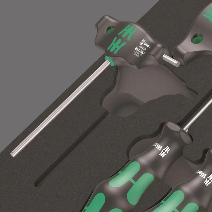 wkrętów z gniazdem sześciokątnym oraz 2 wkrętaki Wera z drążonym trzpieniem do śrub z łbem sześciokątnym.