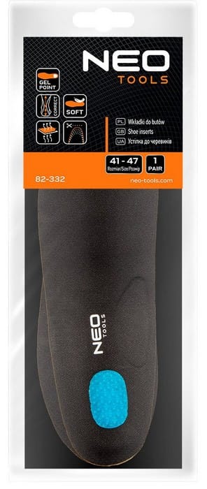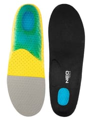 Wkładki do butów amortyzujące, żelowe, do docięcia 41-47, wykonane z wysokiej jakości pianki EVA i silikonowego żelu w tylnej części stopy, profilowanie zapewniające wsparcie łuku stopy oraz zmniejszające ryzyko pojawienia się obtarć i odcisków na stopie, silikonowy pełny obszar piętowy podnosi komfort użytkownika rozpraszając siłę uderzenia i redukując obciążenie pięty, oddychające, trwałe, wygodne, dedykowane do obuwia roboczego, trekkingowego i codziennego, możliwość docięcia wkładki do rozmiarów 41-47