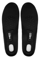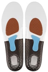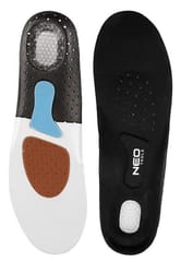 Wkładki do butów sportowe, żelowe, do docięcia 41-47, wykonane z wysokiej jakości pianki EVA, w obszarze piętowym umieszczona żelowa wstawka amortyzująca, w obszarze śródstopia znajduje się podkładka lateksowa poprawiająca komfort użytkownika, profilowanie zapewniające wsparcie łuku stopy oraz zmniejszające ryzyko pojawienia się obtarć i odcisków na stopie, oddychające, trwałe, wygodne, dedykowane do obuwia roboczego, trekkingowego i codziennego, możliwość docięcia wkładki do rozmiarów 41-47