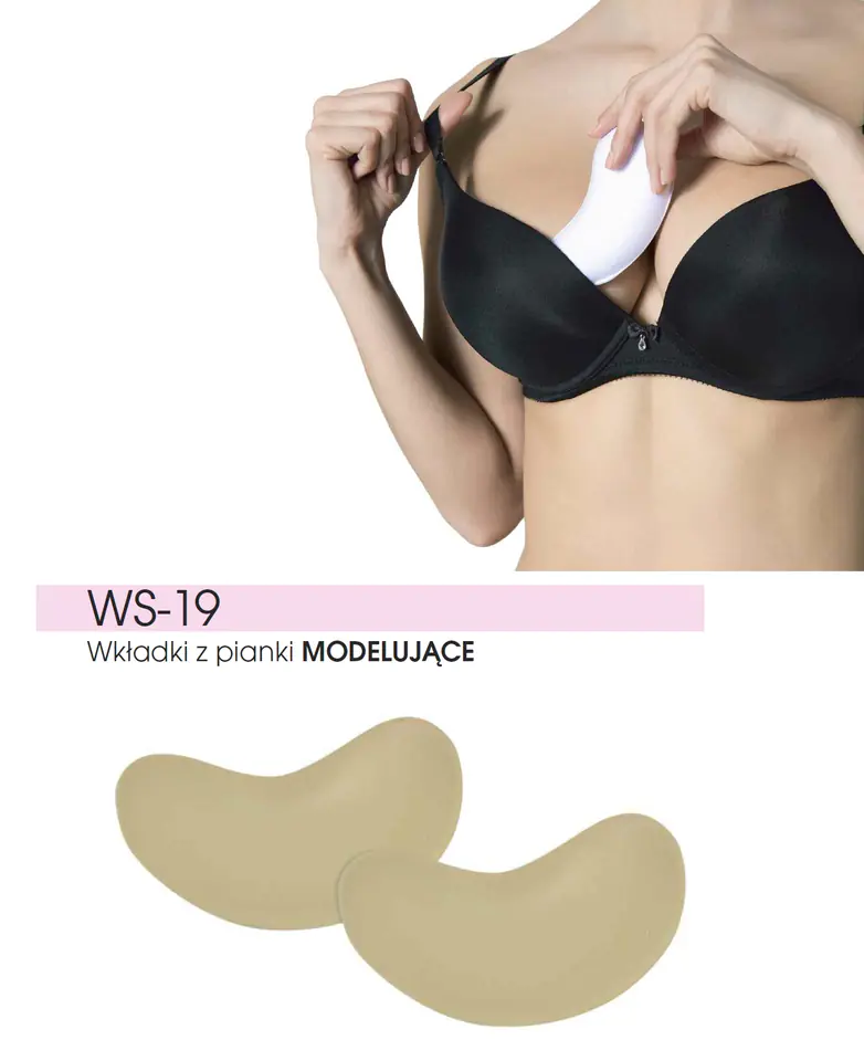 Modelujące wkladki z pianki. Modelują i powiększają piersi, dają efekt push-up. Polecane do umieszczenia w kieszonkach biustonosza.