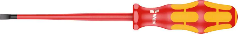 Wykonanie: Z wysokostopowej stali specjalnej. Z okrągłym, izolowanym bitem. Rękojeść i bit izolowane do 1000 V według IEC 60900, DIN EN 60900, VDE 0682/część 201. Dodatkowo wkrętaki posiadają wytłoczenie z symbolem napędu i wielkości.