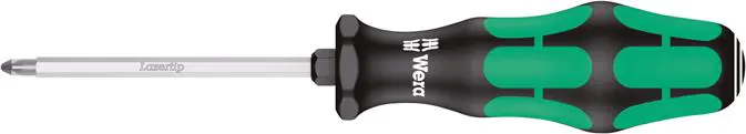 Z lasertip i mikroskopijnie chropowatą powierzchnią. Zmniejszona siła nacisku zapobiega ześlizgiwaniu się z łba śruby. Z wielokomponentową rękojeścią Kraftform® Plus, ergonomiczną, ze zintegrowanymi miękkimi strefami poprawiającymi chwyt, twardymi strefami chwytu zwiększającymi prędkość pracy i sześciokątnym zabezpieczeniem przed staczaniem się.