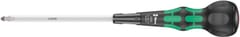 Wkrętak z rękojeścią Kraftform serii 1800 do śrub z gniazdem krzyżowym Phillips. Rękojeść doskonale leży w dłoni. Kulisty kształt umożliwia przenoszenie wysokich momentów obrotowych. Miękkie strefy chwytu zapewniają dobry chwyt i bezstratne przenoszenie sił. Twarde strefy chwytu umożliwiają przenoszenie dużych sił, nawet przy nacisku nasadą dłoni. Wgłębienia na palce w górnej części rękojeści ułatwiają precyzyjną regulację podczas wkręcania. Smukłe przejście między rękojeścią a trzpieniem ułatwia dotarcie nawet do trudno dostępnych i głęboko położonych śrub w wąskich przestrzeniach. Zabezpieczenie na końcu rękojeści utrudnia staczanie się narzędzia z miejsca pracy. Końcówka Lasertip posiada mikroskopijne rowki wypalane promieniem lasera, tworzące chropowatą powierzchnię, która dosłownie "wgryza się" w gniazdo śruby. Zapobiega to wyślizgnięciu się narzędzia.