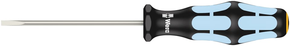 Wykonanie: ze stali szlachetnej. Trzpień okrągły z ciągliwo-twardej (54 HRC) stali nierdzewnej z lasertip i mikroskopijnie chropowatą powierzchnią. Zmniejszona siła nacisku zapobiega ześlizgiwaniu się z łba śruby. Dzięki próżniowemu hartowaniu bit posiada twardość porównywalną z typowymi narzędziami, dlatego w 100% nadaje się do wykorzystania w warsztatach i jest odporny na zużycie. Z 3-komponentową rękojeścią Kraftform® Plus ergonomiczną, ze zintegrowanymi strefami miękkimi dla lepszego chwytu, sześciokątne zabezpieczenie przed staczaniem się narzędzia. Dodatkowo wkrętaki posiadają wytłoczenie z symbolem napędu i wielkości.
