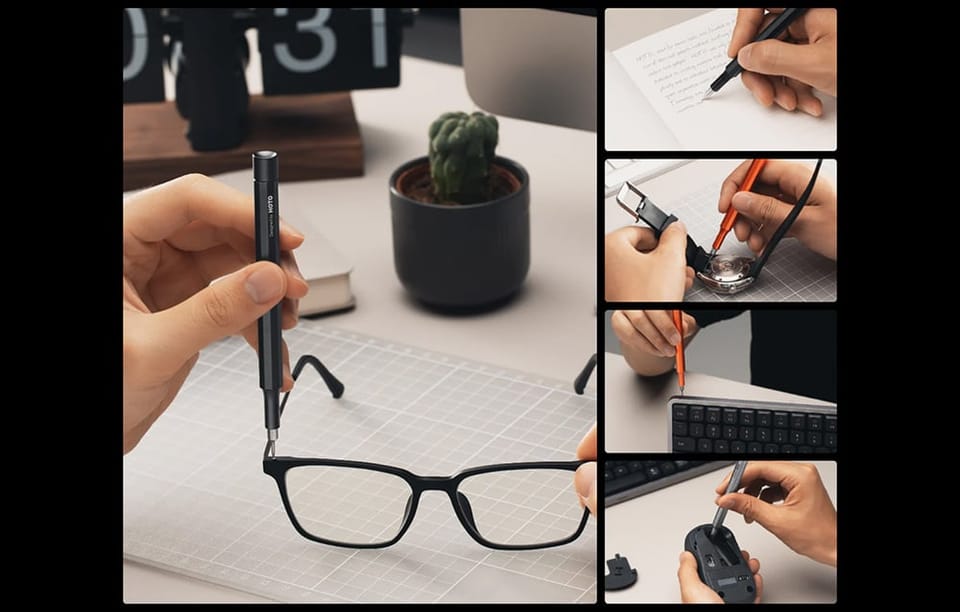 Wkrętak ten jest wyposażony w pięć podstawowych bitów, które pokrywają 90% codziennych potrzeb naprawczych. Idealny do drobnych napraw w domu, pracy czy podczas podróży, doskonale sprawdzi się przy naprawie elektroniki, okularów czy innych drobnych przedmiotów. Dzięki swojej kompaktowej formie i niewielkiej wadze zawsze można mieć go pod ręką, gotowego do użycia w każdej sytuacji.