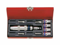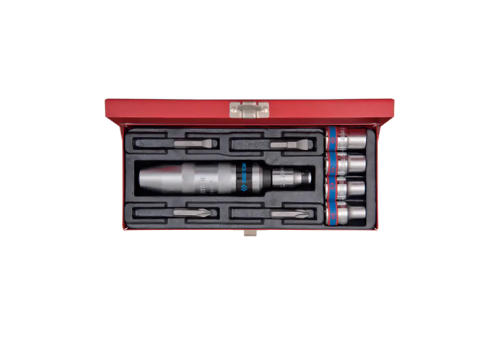 Zestaw narzędzi 1/2" wraz z wkrętakiem udarowym firmy King Tony. W zestawie znajdują się 4 nasadki 6-kątne: 8, 10, 12, 14 mm, krótkie bity płaskie 9, 11 oraz krzyżakowe 2, 3, uchwyt do bitów oraz wkrętak udarowy Karta produktu - 4505MR