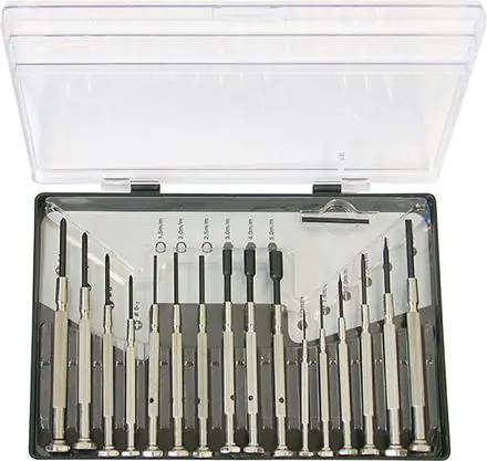 Zestaw wkrętaków zegarmistrzowskich w kasecie z tworzywa sztucznego, 16-cz.