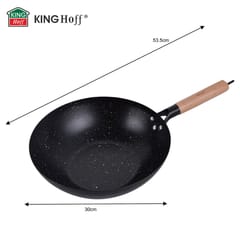 Patelnia KINGHoff KH-1983 to klasyczny WOK o średnicy 30 cm, stworzony do dynamicznego smażenia w wysokiej temperaturze przy minimalnym użyciu tłuszczu. Wykonana z wytrzymałej stali węglowej z marmurkową powłoką nieprzywierającą, błyskawicznie reaguje na zmianę temperatury i pozwala uzyskać idealny efekt stir-fry — chrupiące warzywa, soczyste mięso i głęboki aromat potraw.