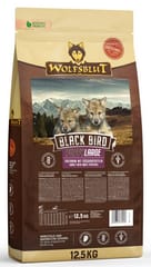 Wolfsblut – bo natura wie najlepiej!Wolfsblut Black Bird Puppy Large – pełnoporcjowa karma dla szczeniąt dużych rasWolfsblut Black Bird Puppy Large to specjalnie opracowana formuła żywieniowa, stworzona z myślą o szczeniętach dużych ras w okresie intensywnego wzrostu i rozwoju. Zawiera aż 51% indyka – w tym świeże i suszone mięso – lekkostrawnego źródła wysokiej jakości białka, niezbędnego do budowy silnych mięśni i zdrowych tkanek.Karma nie zawiera zbóż ani kurczaka, co czyni ją odpowiednią również dla wrażliwych szczeniąt z tendencją do nietolerancji pokarmowych.Naturalna moc mięsa indyka✔ Indyk – lekkostrawne źródło wysokowartościowego białka, delikatne dla układu pokarmowego.✔ Tłuszcz z indyka – zapewnia energię i wspiera zdrową skórę oraz sierść.Delikatna formuła wspierająca rozwój szczeniąt dużych ras✔ Immutop® – koncentrat topinamburu wspierający odporność i równowagę mikroflory jelitowej.✔ Nukleotydy – wspomagają rozwój układu odpornościowego i regenerację komórek.✔ Prebiotyki MOS i FOS – wspierają zdrowie jelit i odporność od najmłodszych miesięcy.Wspierająca zdrowie kompozycja roślinna✔ Słodkie ziemniaki i ciecierzyca – naturalne źródła węglowodanów, dostarczające energii bez glutenu.✔ Pasternak, pomidor i koper włoski – wspomagają trawienie i florę jelitową.✔ Superfoods: jeżyny, jagody, maliny, aronia, czarna porzeczka, bez czarny – bogactwo antyoksydantów wspierających rozwój i odporność.✔ Zioła: tymianek, majeranek, oregano, pietruszka, szałwia – naturalne wsparcie trawienia i funkcji metabolicznych.✔ Siemię lniane – źródło kwasów omega-3 wspierających mózg i sierść.✔ Pokrzywa, mniszek, głóg – naturalne składniki wzmacniające organizm szczenięcia.✔ Ekstrakt z juki Schidigera – pomaga ograniczyć nieprzyjemny zapach odchodów.Dlaczego warto wybrać Wolfsblut Black Bird Puppy Large?To pełnowartościowa karma bez zbóż i kurczaka, idealnie dopasowana do potrzeb rosnących psów dużych ras. Zbilansowana, lekkostrawna i bogata w składniki wspierające odporność i rozwój od pierwszych miesięcy życia.Wolfsblut Black Bird Puppy Large – bo zdrowy start zaczyna się od zrozumienia natury Twojego szczeniaka. 🦃🍠🌿Składniki:Indyk 51% (suszony indyk 36%, świeży indyk 15%), słodkie ziemniaki 28%, dynia 6,5%, tłuszcz z indyka 5,5%, ciecierzyca, pasternak, siemię lniane, koper włoski, minerały, topinambur, tymianek, majeranek, oregano, pietruszka, szałwia, opuncja figowa, amarantus, skrzyp polny, granat, małża zielona, mannanooligosacharydy (prebiotyczne MOS), fruktooligosacharydy (prebiotyczne FOS), pomidory, glukozamina, metylosulfonylometan (MSM), siarczan chondroityny, pokrzywa, głóg, mniszek lekarski, żeń-szeń 0,05%, owoce dzikiej róży, czarna porzeczka, jeżyny 0,02%, bez czarny, ekstrakt z juki schidigera, maliny 0,01%, borówki 0,01%, jagody aronii Cetyl myristoleate.Analiza składu: