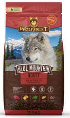 Wolfsblut – bo natura wie najlepiej!Wolfsblut Blue Mountain – pełnoporcjowa karma dla psów dorosłychWolfsblut Blue Mountain to wyjątkowa, biologicznie odpowiednia formuła oparta na 46% mięsa dzikich zwierząt, w tym świeżej dziczyźnie (26%) i króliku (świeżym i suszonym – łącznie 20%). Taka kompozycja białek zapewnia wysoką przyswajalność, doskonałą smakowitość oraz jest zbliżona do diety, jaką instynktownie wybierałby wilk – przodek Twojego psa.Co ważne – receptura nie zawiera kurczaka, dzięki czemu karma jest hipoalergiczna, odpowiednia dla psów z nadwrażliwościami pokarmowymi i delikatnym układem trawiennym.Naturalna siła dziczyzny i królika – dzikość natury w misce✔ Dziczyzna i królik – lekkostrawne, aromatyczne mięsa o niskim potencjale alergizującym.✔ Tłuszcz jagnięcy – bogate źródło energii i niezbędnych kwasów tłuszczowych.✔ Wywar z jagnięciny – wzmacnia smak i poprawia apetyt nawet u wybrednych psów.Dzika roślinność i owoce leśne – kompleksowe wsparcie organizmu✔ Ziemniaki, dynia, ciecierzyca – wartościowe źródła błonnika i energii bez zbóż.✔ Zioła (tymianek, majeranek, oregano, pietruszka, szałwia) – wspierają układ pokarmowy i odporność.✔ Superfoods: topinambur, siemię lniane, pasternak, koper włoski, borówka brusznica, jabłko, banan – dla zdrowego trawienia i błyszczącej sierści.✔ Owoce leśne (jeżyna, malina, czarna jagoda, porzeczka, bez czarny, aronia) – naturalne źródło przeciwutleniaczy.✔ Zioła wspomagające: pokrzywa, głóg, żeń-szeń, nagietek, lubczyk, mniszek, anyż, kozieradka – działają tonizująco, oczyszczająco i wzmacniająco.✔ Prebiotyki MOS i FOS – dla równowagi mikroflory jelitowej.✔ Ekstrakt z juki Schidigera – naturalna redukcja zapachu odchodów.Dlaczego warto wybrać Wolfsblut Blue Mountain?To karma hipoalergiczna i wolna od zbóż, która w naturalny sposób wspiera zdrowie Twojego psa – od odporności po zdrowe trawienie.Wolfsblut Blue Mountain – bo zdrowe odżywianie zaczyna się od zrozumienia natury Twojego psa. 🦌🐇🍃Składnikidziczyzna 46% (świeża dziczyzna 26%, suszony królik 15%, świeży królik 5%), ziemniaki 23%, tłuszcz jagnięcy 6%, ciecierzyca, białko grochu, dynia, włókno grochu, bulion jagnięcy 2%, koper włoski, pasternak, minerały, topinambur 0,3%, siemię lniane, tymianek, majeranek, oregano, pietruszka 0,1%, szałwia, pomidory, mannooligosacharydy (prebiotyczne MOS), fruktooligosacharydy (prebiotyczne FOS), lubczyk, marchew, jabłka, banany, pokrzywa, głóg, mniszek lekarski, żeń-szeń, owoce dzikiej róży, miód, anyż, kozieradka, czarna porzeczka, jeżyny 0,02%, czarny bez, ekstrakt z juki schidigera, maliny 0,01%, borówki 0,01%, jagody aronii.Analiza składu