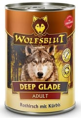 Wolfsblut Pełnoporcjowa karma dla psów.SkładnikiJeleń szlachetny 56%, bulion, dynia 3%, marchew, bataty, pomidory, minerały, buraki, słonecznik bulwiasty, szpinak, mieszanka owoców (jeżyny, maliny, czarny bez, porzeczki czarne, borówki, żurawina), owoce dzikiej róży, ekstrakt z juki, siemię lniane, koper włoski, mieszanka ziół (anyż, kozieradka, mięta pieprzowa, pietruszka, oregano, tymianek, pokrzywa, mniszek lekarski, głóg, żeń-szeń), wodorosty, spirulina, małż zielony.Analiza składu
