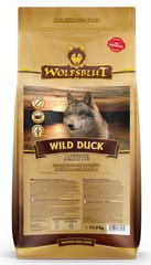 Wolfsblut – bo natura wie najlepiej!Wolfsblut Wild Duck Active – pełnoporcjowa karma dla psów dorosłych ze zwiększonym zapotrzebowaniem energetycznymWolfsblut Wild Duck Active to wyjątkowa, bezzbożowa i biologicznie odpowiednia karma oparta na pysznym mięsie z kaczki – źródle białka, które idealnie sprawdzi się u psów z delikatnym układem pokarmowym. Receptura bazuje na 44% mięsa kaczki, w tym świeżym mięsie (22%), suszonej kaczce (22%) oraz naturalnym tłuszczu kaczym (9%) – tworząc pełnowartościowe i smakowite źródło białka i energii.Dzięki temu, że mięso i tłuszcz pochodzą z jednego źródła, karma ta jest doskonałym wyborem dla psów z alergiami i jako wsparcie w diecie eliminacyjnej. Co więcej – brak kurczaka sprawia, że jest to formuła hipoalergiczna, bezpieczna również dla bardziej wrażliwych pupili.Smaczna i naturalna dieta inspirowana wilczą naturą✔ Mięso z kaczki – jedno z najlepiej przyswajalnych białek, o wysokiej smakowitości.✔ Hipoalergiczna formuła – bez kurczaka i zbóż, idealna dla psów z nietolerancjami pokarmowymi.✔ Delikatne źródła węglowodanów – ziemniaki, bataty, ciecierzyca – dostarczają długotrwałej energii.Naturalna moc warzyw, owoców i ziółWolfsblut Wild Duck Active łączy w sobie dzikość natury i dobroczynne właściwości roślinnych składników:✔ Topinambur, pasternak, koper włoski, dynia, siemię lniane – wspierają trawienie i równowagę jelitową.✔ Jagody, maliny, jeżyny, porzeczki, aronia i bez czarny – to naturalne źródła przeciwutleniaczy, chroniące komórki.✔ Zioła śródziemnomorskie: tymianek, oregano, pietruszka, szałwia i majeranek – wspierają metabolizm i układ odpornościowy.✔ Wywar z kaczki – naturalny nośnik smaku, który zwiększa akceptację karmy nawet u wybrednych psów.✔ Mniszek, żeń-szeń i głóg – wzmacniają ogólną kondycję i witalność psa.✔ MOS i FOS – naturalne prebiotyki wspierające zdrową mikroflorę jelit.✔ Ekstrakt z Yucca Schidigera – pomaga redukować zapach odchodów.Dlaczego warto wybrać Wolfsblut Wild Duck Active?To karma, która łączy prostotę składu z siłą natury – bez sztucznych dodatków, zbędnych zbóż czy powszechnych alergenów. Stworzona dla psów, których potrzeby sięgają głębiej – do instynktu i naturalnej diety przodków.Wolfsblut Wild Duck Active – bo zdrowe odżywianie zaczyna się od zrozumienia natury Twojego psa. 🐾🦆🌿SkładnikiKaczka 44% (świeża kaczka 22%, suszona kaczka 22%), ziemniaki 22%, tłuszcz z kaczki 9%, bataty, białko ziemniaczane, dynia, sos z kaczki, ciecierzyca, siemię lniane, koper włoski, pasternak, minerały, topinambur 0,3%, tymianek 0,1%, majeranek, oregano, pietruszka, szałwia, mannanooligosacharydy (prebiotyczne MOS), fruktooligosacharydy (prebiotyczne FOS), pomidory, glukozamina, metylosulfonylometan (MSM), siarczan chondroityny, pokrzywa, głóg, mniszek lekarski, żeń-szeń, owoce dzikiej róży, czarne porzeczki, jeżyny, czarny bez, ekstrakt z juki schidigera, maliny, borówki 0,01%, jagody aronii.Analiza składu