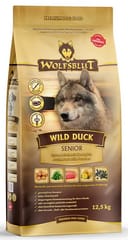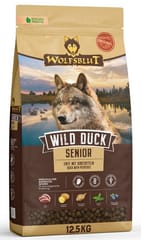 Wolfsblut – bo natura wie najlepiej!Wolfsblut Wild Duck Senior – pełnoporcjowa karma dla psów starszychWolfsblut Wild Duck Senior to wyjątkowa formuła stworzona z myślą o potrzebach żywieniowych starszych psów, które wymagają lekkostrawnych, naturalnych składników i wsparcia dla stawów. Receptura opiera się na 37% kaczki – w tym świeżym i suszonym mięsie oraz tłuszczu kaczym – delikatnym źródle białka, które dostarcza niezbędnych aminokwasów i wspiera dobrą kondycję mięśniową psa w starszym wieku.Nie zawiera zbóż ani kurczaka, co czyni ją idealną dla psów seniorów z nietolerancjami pokarmowymi.Naturalna moc mięsa z dzikiego ptactwa✔ Kaczka – lekkostrawne, smakowite źródło białka.✔ Tłuszcz kaczy – dostarcza energii i wspiera zdrową skórę i sierść.✔ Wywar z kury – wzmacnia smak i wartości odżywcze karmy.Kompleksowa ochrona stawów i sprawności✔ Glukozamina, MSM i siarczan chondroityny – wspierają mobilność i zdrowie stawów, pomagając utrzymać sprawność u starszych psów.Wspierająca zdrowie kompozycja roślinna✔ Ziemniaki i bataty – lekkostrawne źródła węglowodanów, wolne od glutenu.✔ Warzywa i rośliny strączkowe: pasternak, groch, topinambur – wspomagają trawienie i zdrową florę jelitową.✔ Superfoods: jeżyna, malina, czarna jagoda, czarna porzeczka, aronia, czarny bez – bogate w przeciwutleniacze, wspierają układ odpornościowy.✔ Zioła: tymianek, majeranek, oregano, pietruszka, szałwia, anyż, kozieradka – wspomagają trawienie, działają łagodząco i przeciwzapalnie.✔ Siemię lniane i drożdże – źródła błonnika, witamin z grupy B i kwasów omega.✔ Prebiotyki MOS i FOS – regulują florę bakteryjną jelit, wspomagają odporność.✔ Ekstrakt z juki Schidigera – ogranicza zapach odchodów.✔ Ekstrakt z cytrusów – naturalne źródło bioflawonoidów wspierających zdrowie komórkowe.✔ Mniszek lekarski – oczyszcza organizm i wspiera pracę wątroby.Dlaczego warto wybrać Wolfsblut Wild Duck Senior?To pełnowartościowa karma dla starszych psów, która łączy lekkostrawne mięso kaczki z naturalnym wsparciem stawów, odporności i trawienia. Bez zbóż i kurczaka – stworzona z myślą o psach wrażliwych i dojrzałych.Wolfsblut Wild Duck Senior – bo zdrowe starzenie zaczyna się od zrozumienia natury Twojego psa. 🦆🥔🌿SkładnikiKaczka 37% (świeża kaczka 23%, suszona kaczka 14%), ziemniaki 23%, bataty, groszek, białko grochu, włókno grochu, siemię lniane, sok z kaczki 2%, tłuszcz z kaczki 1%, minerały, pasternak, topinambur 0,3%, mannooligosacharydy (prebiotyczne MOS), fruktooligosacharydy (prebiotyczne FOS), tymianek 0,1%, majeranek, oregano, pietruszka, szałwia, pomidory, glukozamina, metylosulfonylometan (MSM), siarczan chondroityny, mniszek lekarski, żeń-szeń, głóg, pokrzywa, owoce dzikiej róży, anyż, kozieradka, czarna porzeczka, jeżyny, czarny bez, ekstrakt z juki schidigera, borówki 0,01%, maliny, owoce aronii.Analiza składu