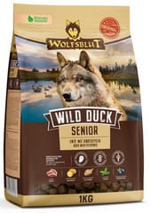 Wolfsblut – bo natura wie najlepiej!Wolfsblut Wild Duck Senior – pełnoporcjowa karma dla psów starszychWolfsblut Wild Duck Senior to wyjątkowa formuła stworzona z myślą o potrzebach żywieniowych starszych psów, które wymagają lekkostrawnych, naturalnych składników i wsparcia dla stawów. Receptura opiera się na 37% kaczki – w tym świeżym i suszonym mięsie oraz tłuszczu kaczym – delikatnym źródle białka, które dostarcza niezbędnych aminokwasów i wspiera dobrą kondycję mięśniową psa w starszym wieku.Nie zawiera zbóż ani kurczaka, co czyni ją idealną dla psów seniorów z nietolerancjami pokarmowymi.Naturalna moc mięsa z dzikiego ptactwa✔ Kaczka – lekkostrawne, smakowite źródło białka.✔ Tłuszcz kaczy – dostarcza energii i wspiera zdrową skórę i sierść.✔ Wywar z kury – wzmacnia smak i wartości odżywcze karmy.Kompleksowa ochrona stawów i sprawności✔ Glukozamina, MSM i siarczan chondroityny – wspierają mobilność i zdrowie stawów, pomagając utrzymać sprawność u starszych psów.Wspierająca zdrowie kompozycja roślinna✔ Ziemniaki i bataty – lekkostrawne źródła węglowodanów, wolne od glutenu.✔ Warzywa i rośliny strączkowe: pasternak, groch, topinambur – wspomagają trawienie i zdrową florę jelitową.✔ Superfoods: jeżyna, malina, czarna jagoda, czarna porzeczka, aronia, czarny bez – bogate w przeciwutleniacze, wspierają układ odpornościowy.✔ Zioła: tymianek, majeranek, oregano, pietruszka, szałwia, anyż, kozieradka – wspomagają trawienie, działają łagodząco i przeciwzapalnie.✔ Siemię lniane i drożdże – źródła błonnika, witamin z grupy B i kwasów omega.✔ Prebiotyki MOS i FOS – regulują florę bakteryjną jelit, wspomagają odporność.✔ Ekstrakt z juki Schidigera – ogranicza zapach odchodów.✔ Ekstrakt z cytrusów – naturalne źródło bioflawonoidów wspierających zdrowie komórkowe.✔ Mniszek lekarski – oczyszcza organizm i wspiera pracę wątroby.Dlaczego warto wybrać Wolfsblut Wild Duck Senior?To pełnowartościowa karma dla starszych psów, która łączy lekkostrawne mięso kaczki z naturalnym wsparciem stawów, odporności i trawienia. Bez zbóż i kurczaka – stworzona z myślą o psach wrażliwych i dojrzałych.Wolfsblut Wild Duck Senior – bo zdrowe starzenie zaczyna się od zrozumienia natury Twojego psa. 🦆🥔🌿SkładnikiKaczka 37% (świeża kaczka 23%, suszona kaczka 14%), ziemniaki 23%, bataty, groszek, białko grochu, włókno grochu, siemię lniane, sok z kaczki 2%, tłuszcz z kaczki 1%, minerały, pasternak, topinambur 0,3%, mannooligosacharydy (prebiotyczne MOS), fruktooligosacharydy (prebiotyczne FOS), tymianek 0,1%, majeranek, oregano, pietruszka, szałwia, pomidory, glukozamina, metylosulfonylometan (MSM), siarczan chondroityny, mniszek lekarski, żeń-szeń, głóg, pokrzywa, owoce dzikiej róży, anyż, kozieradka, czarna porzeczka, jeżyny, czarny bez, ekstrakt z juki schidigera, borówki 0,01%, maliny, owoce aronii.Analiza składu