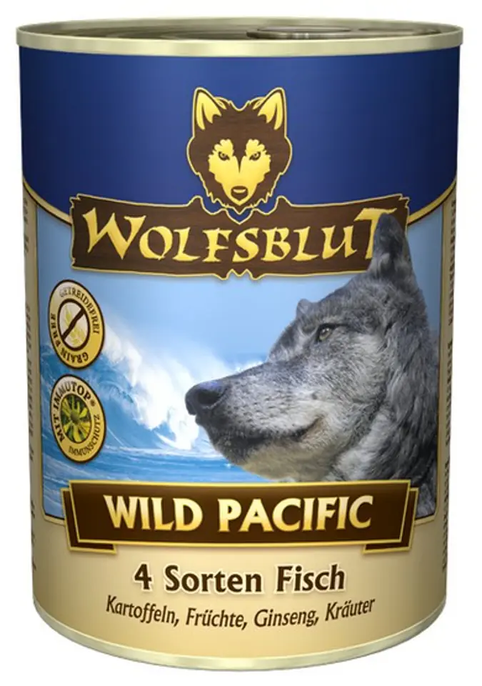 Wolfsblut Pełnoporcjowa karma dla psów.SkładnikiDorsz, halibut, sola, łosoś (min. 66%), mąka ziemniaczana (min. 3,1%), ziemniaki (min. 2%), pomidor, wodorosty, Immutop®, jabłko, trawa morska, mieszanka ziół, wyciąg z juki, chondroityny, glukozamina, tauryna, żurawina, koper, głóg, lecytyna, nagietek, rokitnik zwyczajny, spirulina, żeń-szeń, pokrzywa, olej z łososia, anyż, kozieradka, minerałyAnaliza składu