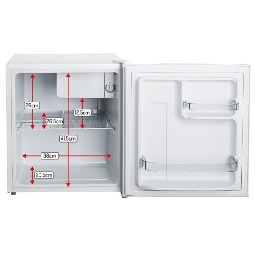 Pojemność netto: 45 litrów6 stopniowa kontrola intensywności chłodzeniaRęczny system odszranianiaMożliwość zmiany strony zawiasów Metalowe drzwi2 półki w drzwiach z miejscem na dużą butelkęRegulowana nóżka poziomującaMaksymalna głębokość przy otwartych drzwiach: 86,0 cmWymiary: Gł.: 45.0 cm X Wys.: 49,5 cm X Sz.:45,0 cmRoczne zużycie energii: 80 kW h/rokCzynnik chłodzący: R600a Zużycie energii: 0.316 kW h/24hKlasa energetyczna: ERączki drzwi wpuszczanePoziom hałasu: 40 dBNapięcie 220-240V~ 50/60 HzRodzaj wtyczki zasilania: E/FKlasa klimatyczna: N, STDługość przewodu zasilającego: 170 cmKolor przewodu zasilającego: czarny