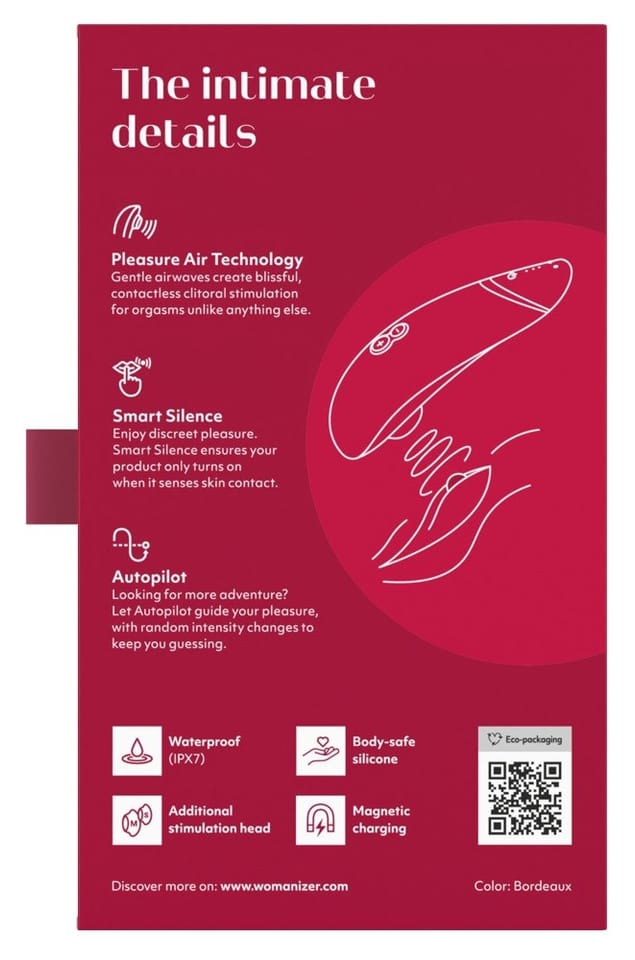 Model Premium 2 wyposażony został w system Smart Silence, ktory automatycznie aktywuje urządzenie tylko podczas kontaktu z ciałem, co zapewnia maksymalną dyskrecję i komfort. Dzięki funkcji autopilota Womanizer Premium 2 samodzielnie przełącza poziomy intensywności, pozwalając na pełną swobodę i relaks podczas użytkowania.