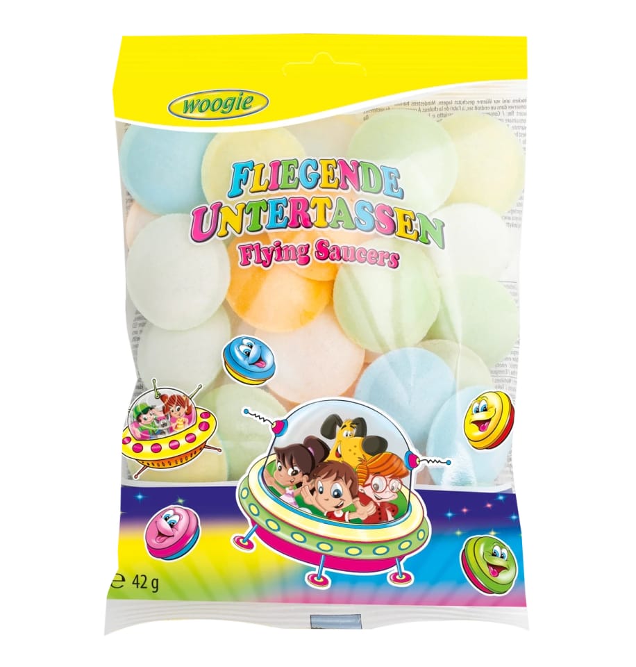 Latające Spodki Woogie - Przywróć Smak Dzieciństwa. Kolorowe spłaszczone kapsułki z owocowo-kwaśnym musującym wypełnieniem to nie tylko słodycz, to także podróż w czasie do beztroskich lat dzieciństwa.