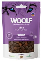 Soft Cubes Monoprotein Deer (Delikatne kosteczki monoproteinowe - jeleń)Delikatne kosteczki monoproteinowe to przysmak dla każdego psa. Są tworzone z najwyższej jakości świeżych składników, nie zawierają zbóż ani glutenu. Proces przygotowywania opiera się na wolnym gotowaniu oraz tłoczeniu na zimno, dzięki czemu substancje odżywcze są w pełni zachowane.Przysmak jest miękki i apetyczny - nadaje się dla psów w każdym wieku. Trafi również w gusta psów wybrednych lub o obniżonym apetycie.Tym przysmakiem nagrodzisz psa lub sprawisz niespodziankę podczas wspólnej zabawy.Skład:Świeży jeleń (85%), hydrolizowana skrobia, gliceryna roślinna, naturalne antyoksydanty (tokoferole)Analiza:białko surowe 28%, tłuszcz surowy 10%, włókno surowe 1%, popiół surowy 7%, wilgotność 28%.Dawkowanie:Podawać jako przysmak lub nagrodę.