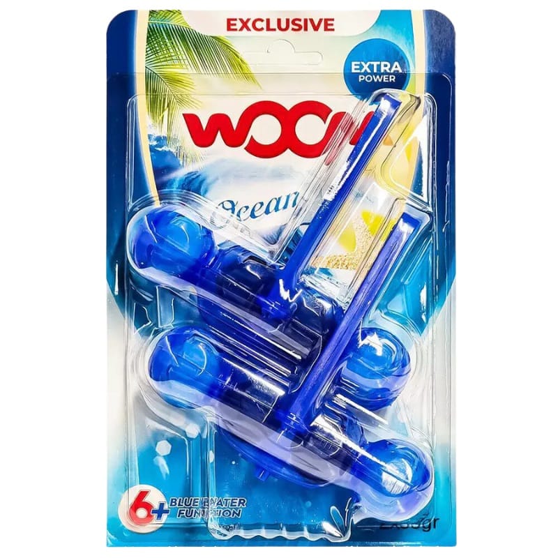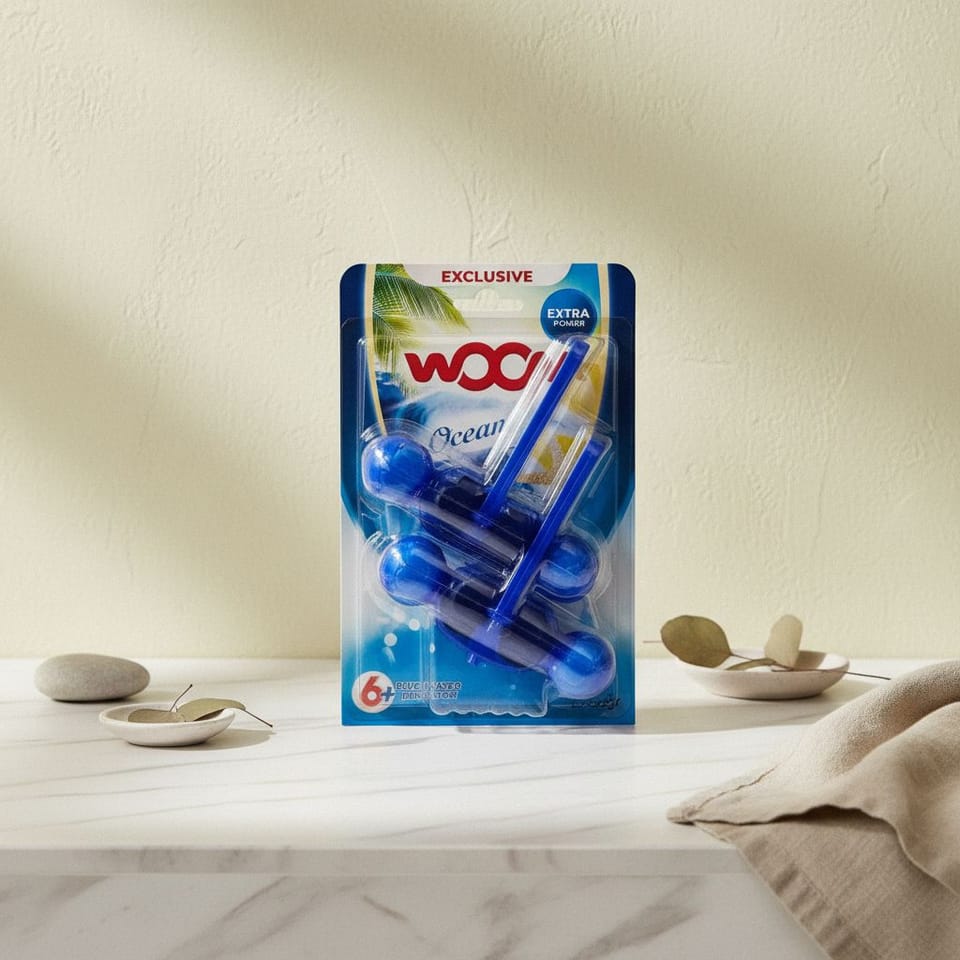 Zawieszka do toalety Woom Bluewater zapewnia higieniczną czystość naszej toalety i zostawia przyjemny, świeży morski zapach. Barwi wodę na niebiesko. Usuwa nieprzyjemny zapach z toalety. Kompleksowo dba o naszą łazienkę. Aktywnie czyści i tworzy obfitą pianę. Zawieszka do toalety Woom Bluewater to numer jeden dla naszych klientów. W opakowaniu znajdują się dwie zawieszki Woom Bluewater - Ocean.
