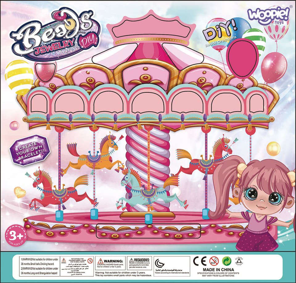 Zestaw do Robienia Biżuterii od marki WOOPIE jest stylowym, kreatywnym i zjawiskowym zestawem dla każdego dziecka. Dziecko samodzielnie może mieszać i dopasowywać różne koraliki oraz zawieszki, aby stworzyć swoją niepowtarzalną bransoletkę, pierścionek lub wisiorek. Zestaw zawiera różnego rodzaju elementy: koraliki różnej wielkości, zawieszki, elementy przypominające zwierzątka, oraz żyłki. Komplet zapakowany jest w kolorowe pudełko przedstawiające karuzele idealnie nadaje się na prezent. Po rozpakowaniu zestaw jest łatwy do przeniesienia- jest lekki i poręczny, co sprawia, że dziecko z łatwością może go zabrać ze sobą do przedszkola, do kolegi, do ogrodu. Opakowanie, również posiada formę organizera, co pozwoli na bezpieczne przechowywanie małych elementów znajdujących się w zestawie. Zabawa w tworzenie biżuterii pozytywnie wpływa na rozwój dziecka, kształtuje jego zdolności plastyczne wraz z rozwojem wyobraźni oraz kreatywności, ćwicząc jednocześnie koncentrację; rozwija zdolności manualne/motoryczne tzw. "małą motorykę" (ruch rączek), a także przy zabawie z przyjaciółmi uczy współpracy, dzielenia się i usprawnia zdolności społeczno-integracyjne.