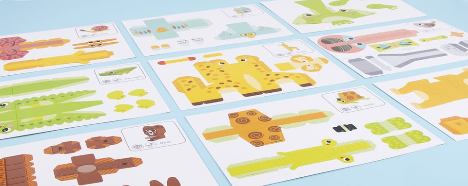 Zwierzątka Origami 3d od marki WOOPIE z serii ART&FUN daje nieskończone możliwości kreatywnej zabawy dla dziecka. Dziecko dzięki temu zestawowi kreatywnemu może stworzyć 10 papierowych zwierzaków origami 3D. Zestaw zawiera 5 kart, na których znajduję się po 2 zwierzaki. Zwierzaki są łatwe do wykonania wystarczy trochę zręczności i kleju. Nie potrzeba nożyczek, ponieważ elementy można łatwo wydzielić za pomocą rąk. Zwierzątkami dodatkowo można zachęcić dziecko do nauki angielskich nazw zwierząt. Zabawka rozwinie zdolności manualne dziecka tzw. "małą motorykę", koncentracje oraz wyobraźnie i kreatywność dziecka.