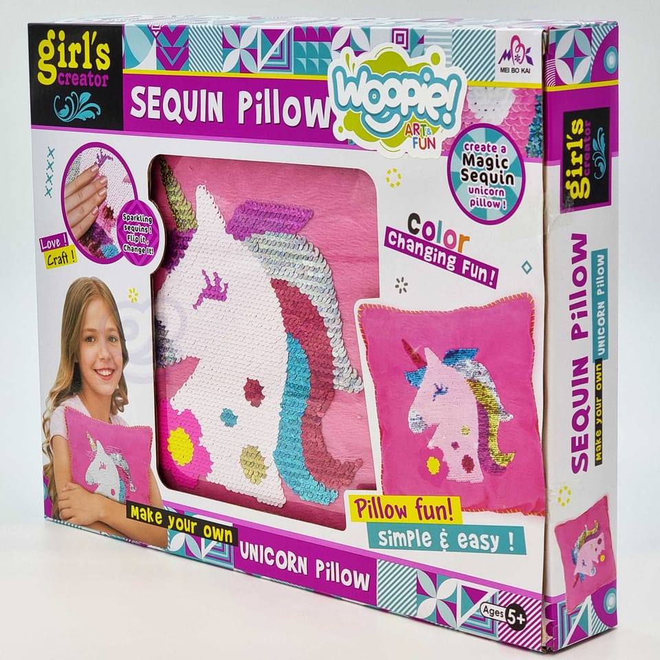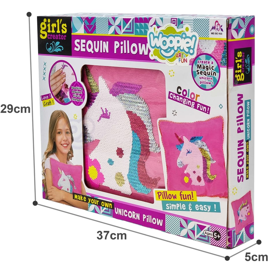 Poduszka do Ozdobienia Jednorożec od marki WOOPIE z serii ART&FUN wprowadzi dziecko w świat mody! Zestaw kreatywny dla każdego. Zestaw zawiera: poszewkę, poduszkę, cekiny, igłę i nic. Samo szycie poduszki jest proste, każdy sobie z tym poradzi - wystarczy odrobinę wyobraźni i kreatywności! Gotowa poduszka ciekawą właściwość: gdy się potrze zmienia kolor. Zestaw rozwija pierwsze zainteresowania jakim jest szycie i moda, cierpliwość, a przede wszystkim zdolności manualne! Charakterystyka: