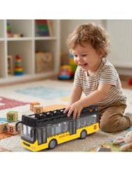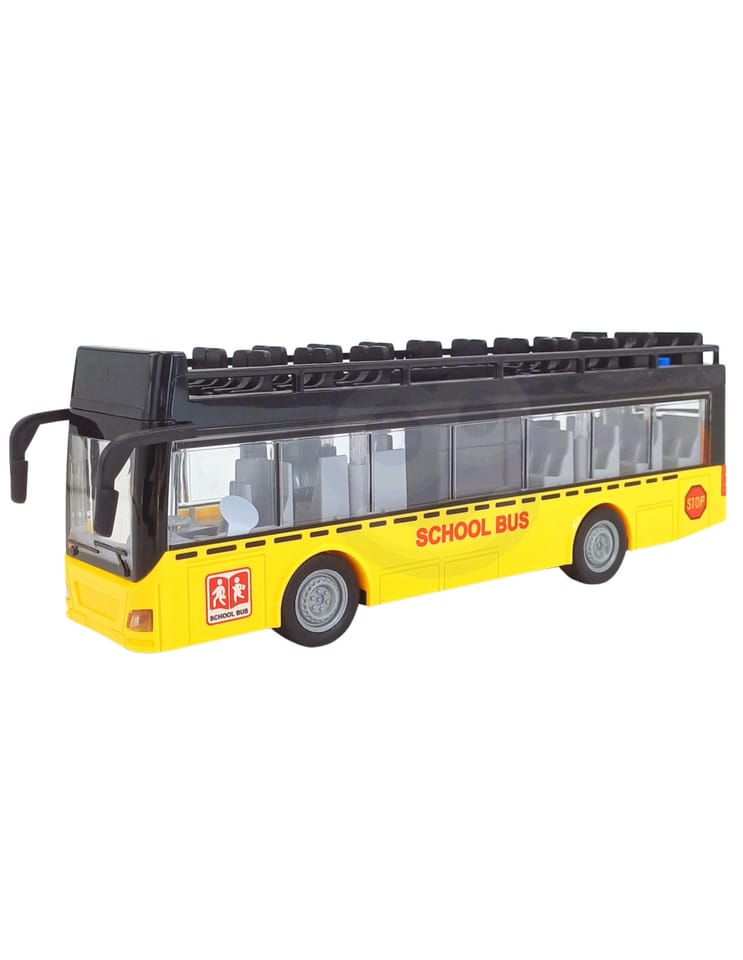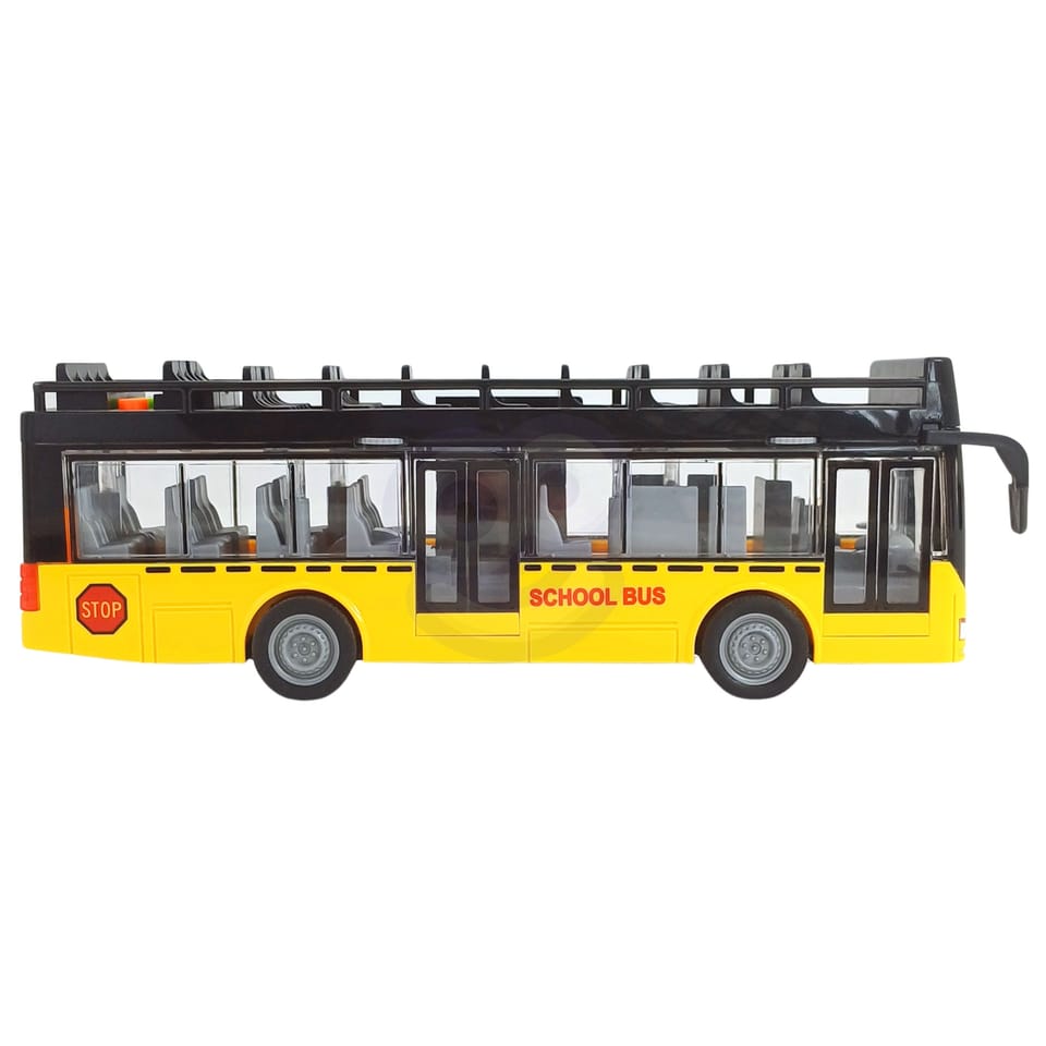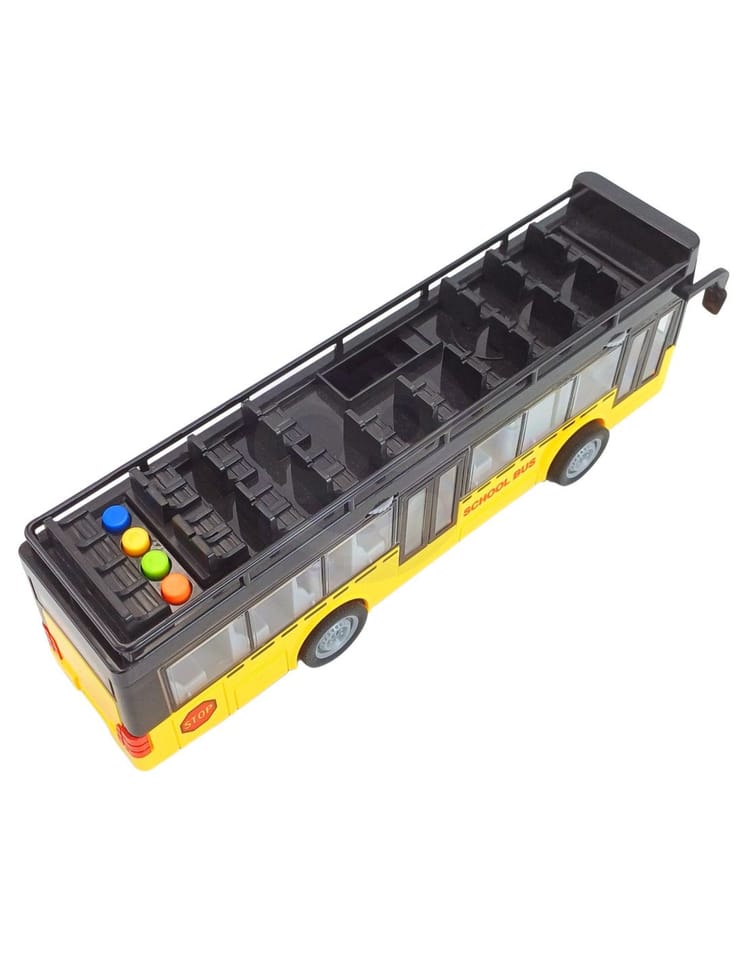 Autobus ze Światłami i Otwieranymi Drzwiami od marki WOOPIE z jednej strony posiada dwie pary otwieranych drzwi, dodatkowo pojazd wyposażony jest w napęd friction, wystarczy pchnąć je do przodu, aby samo pojechało. Zabawka wydaje dźwięki oraz zapala się niebieskie światło w środku pojazdu. Jest idealna dla dziecka, które lubi bawić się przeróżnymi pojazdami.