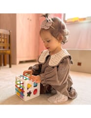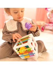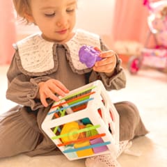 Elastyczna Kostka Sensoryczna od marki WOOPIE pobudzi rozwój Twojego dziecka! Zabawa dziecka polega na wkładaniu i wyjmowaniu elementów z edukacyjnej kostki, dodatkowo jedna ściana to klasyczny sorter z dopasowaniem konkretnych figur geometrycznych. Dziecko podczas zabawy rozwija zmysły oraz poprawia zdolności manualne. Każdy z klocków wyróżnia się, co budzi ciekawość dziecka na tyle, by chciało je wyciągnąć i włożyć z powrotem do sortera. Zabawka rozwija sensorykę i umysł dziecka, a także zachęca do eksperymentowania. Dodatkowo, gdy dziecko podrośnie klocki można wykorzystać do nauki kolorów i kształtów. Niezbędna zabawka dla dziecka we wczesnym etapie życia!