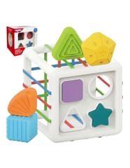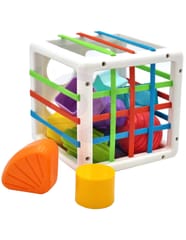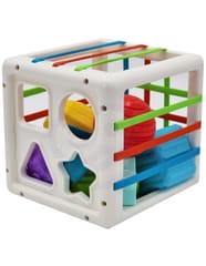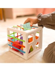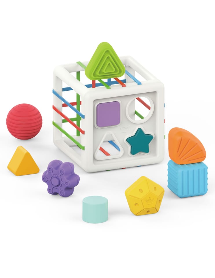 - - w zestawie: kostka-sorter + 11 różnorodnych twardych klocków,