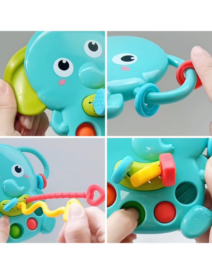 - - Przyjazny kształt słonika i żywe kolory przyciągają uwagę dziecka