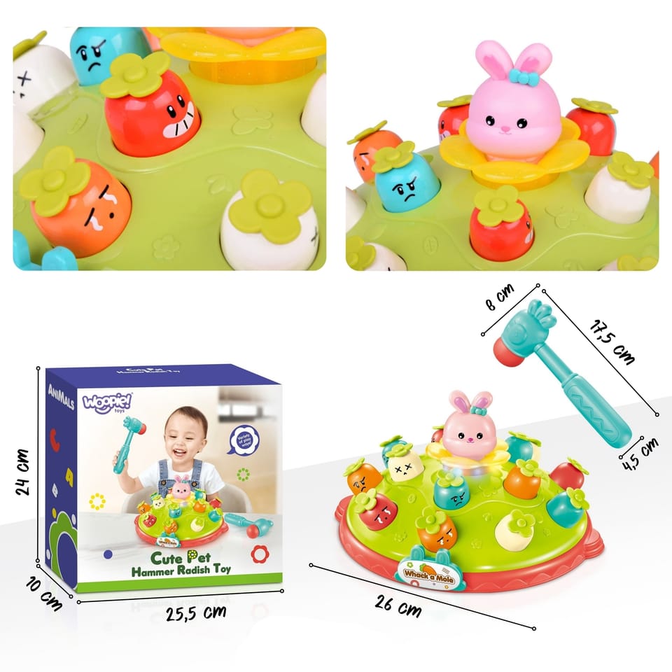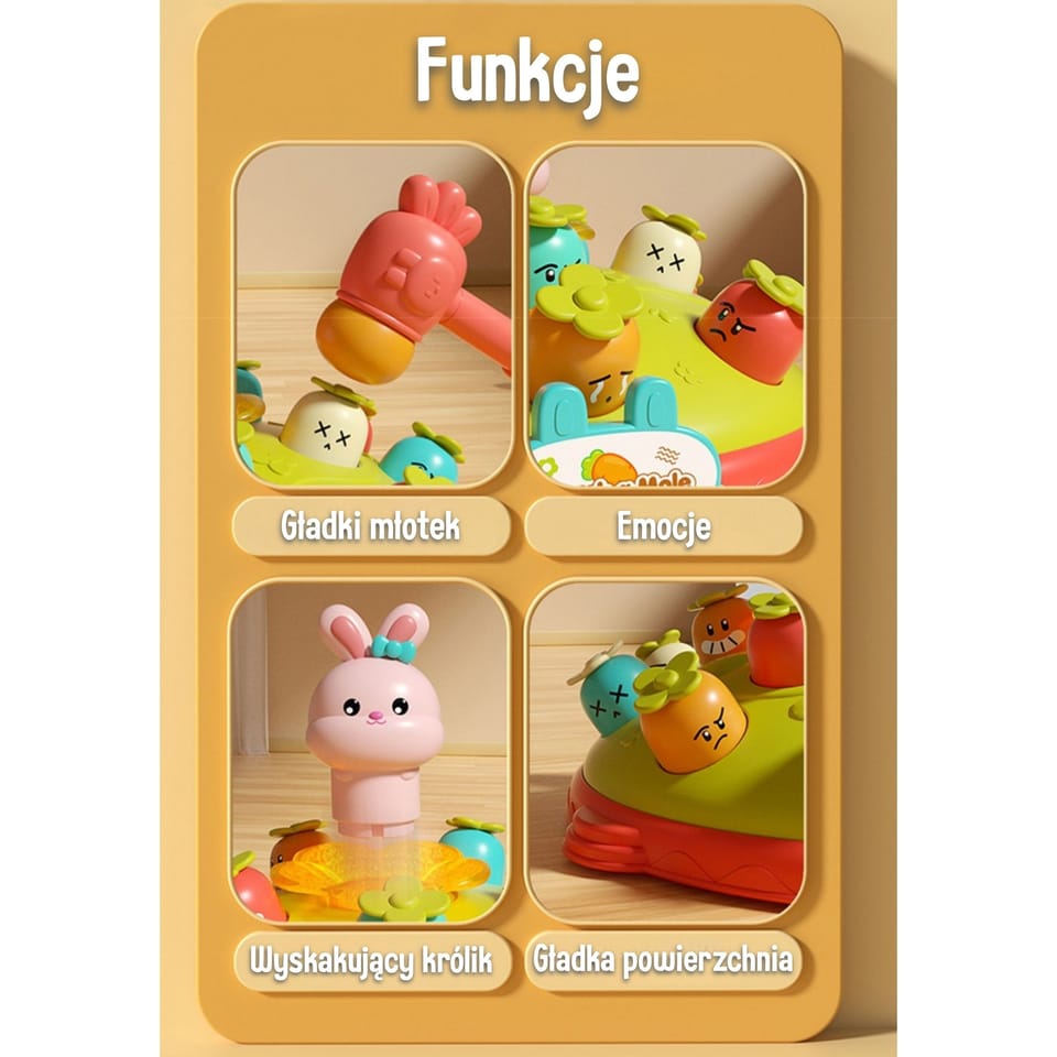 Poznaj zabawkę, która zapewni godziny fantastycznej zabawy i pomoże w rozwoju Twojego dziecka. Ta interaktywna gra uderz w kreta od marki Woopie to nowoczesne podejście do klasycznej rozrywki, które angażuje malucha w dynamiczną rywalizację. Dzięki wesołym dźwiękom zabawa staje się jeszcze bardziej wciągająca. To idealny sposób na ćwiczenie refleksu i koordynacji, a jednocześnie wyśmienita zabawa, która pobudza kreatywność i wyobraźnię. W tej wesołej grze Twoim zadaniem jest uderzyć młotkiem w przypadkowo wybraną marchewkę. Trafisz — i nagle z kwiatka wystrzeli mały króliczek, skacząc w powietrzu jak z procy! Zabawka została zaprojektowana z myślą o bezpieczeństwie i rozwoju dziecka. Gładkie krawędzie i solidne wykonanie sprawiają, że jest w pełni bezpieczna, a miękkie młotki chronią małe rączki. To fantastyczny prezent, który rozwija kluczowe umiejętności w przyjemny sposób!