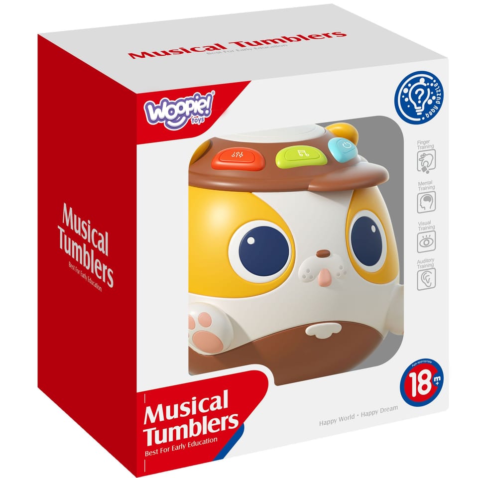 Piesek kula muzyczna to interaktywna zabawka od marki WOOPIE. Grająca kula posiada przyciski, które po naciśnięciu uruchamiają dźwięki stymulujące zmysł słuchu. Muzyczny piesek jest idealny dla dzieci od 18 miesiąca życia, wykonany z bezpiecznego tworzywa, posiada także efekty świetlne stymulujące rozwój wzroku. Bardzo dobrze sprawdzi się przy rozwijaniu motoryki dziecięcej.