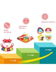 - - Zawiera wiele różnych elementów, które stymulują zmysły dziecka, takie jak teksturowane powierzchnie i dźwięk