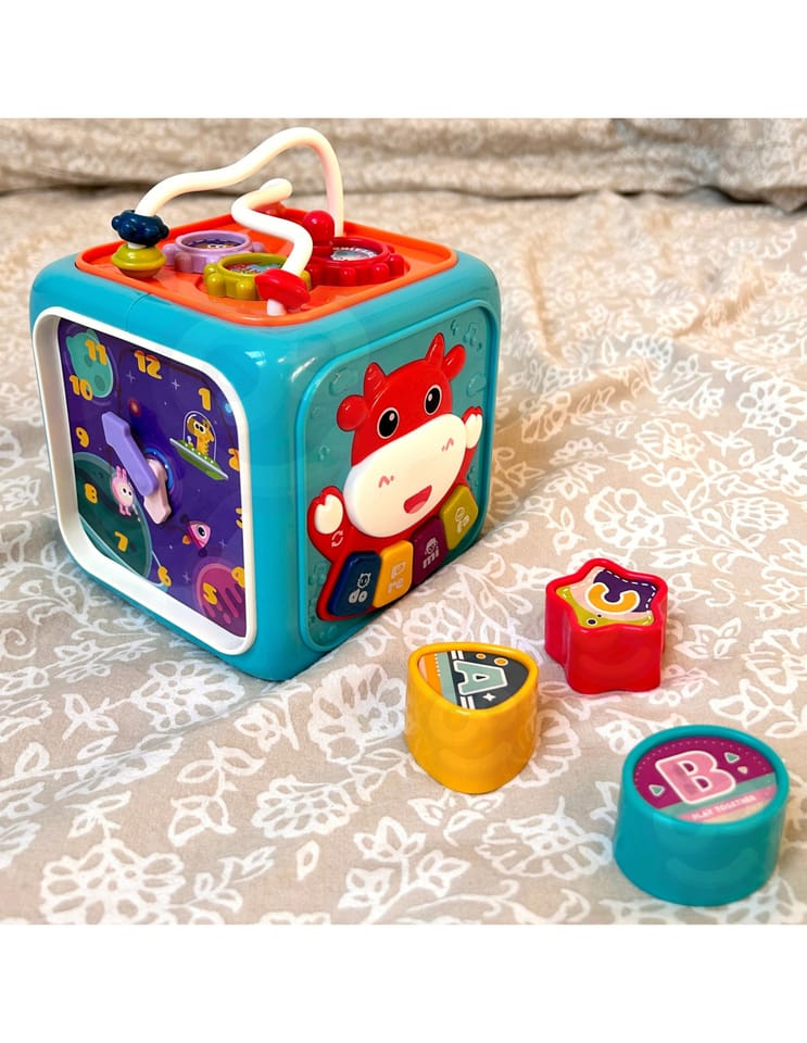 - - Jasne i żywe kolory kostki wraz z różnymi kształtami, teksturami i dźwiękami zapewniają stymulację sensoryczną i zachęcają do rozwoju umiejętności motorycznych i koordynacji ręka-oko