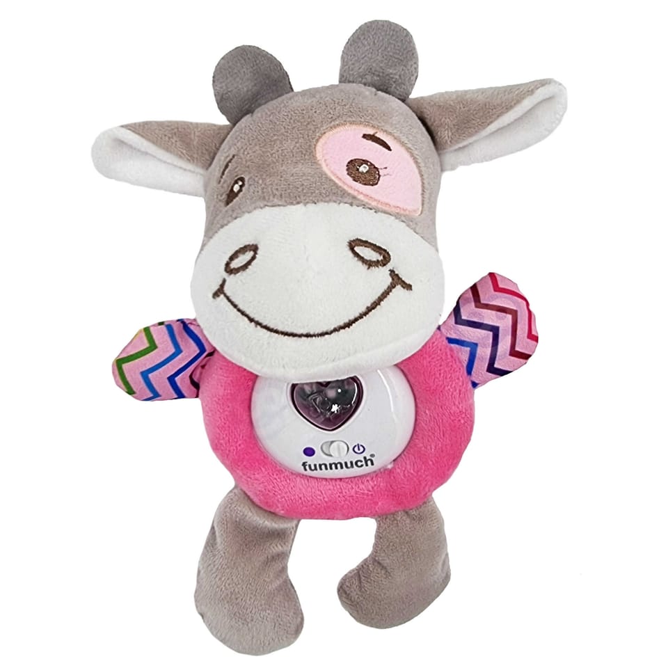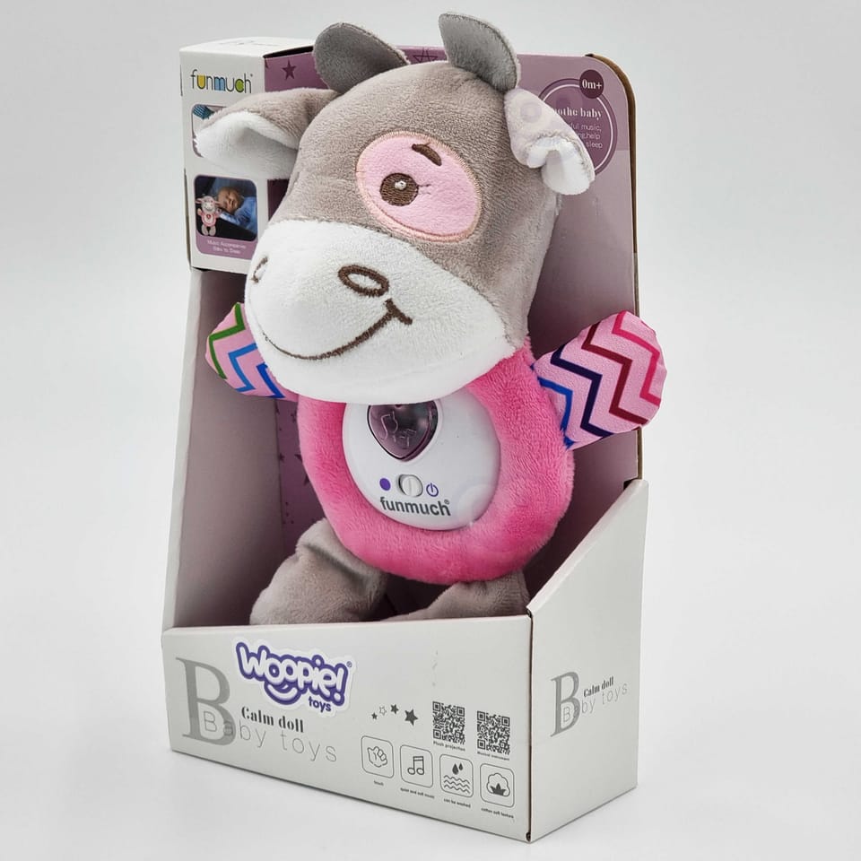 Interaktywny Pluszowy Byczek uspokoi oraz uśpi Twoje dziecko. Zabawka posiada opcję włączenia kołysanki dla Twojej małej pociechy oraz posiada opcję wyświetlania kolorowych światełek, dzięki którym Twój maluch nie znudzi się zabawką. Ten miękki w dotyku miś stanie się przyjacielem Twojego dziecka już od najmłodszych lat. Zabawka jest przystosowana dla niemowląt, dlatego jest miękka i wypełniona watą, przez co nie musimy martwić się o to, że Twoja pociecha może coś sobie zrobić. Dodatkowo pluszaka można bezpiecznie oraz łatwo czyścić (wyjmując mechanizm) bez obaw o jakiekolwiek uszkodzenia.