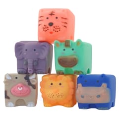 WOOPIE Klocki Sensoryczne Układanka do ściskania zaciekawią każdego malucha. Dzięki ciekawym kształtom, kolorom i możliwości wydawania dźwięków przez ściśnięcie doskonale stymulują rozwój koordynacji wzrokowo-słuchowej, motorycznej dziecka oraz zmysłu dotyku. Klocki posiadają wypukłe kształty z wizerunkiem zwierząt. Klocki są miękkie i przyjemne w dotyku oraz wydają dźwięki podczas ściskania. Dzięki swojej budowie sprawdzą się również doskonale jako gryzak. Dzięki wizerunkom zwierząt dziecko może zapoznać się ze światem przyrody. Produkt w pięknej stonowanej kolorystyce przeznaczony dla dzieci od 12 miesiąca życia.