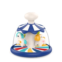 Wesoły i kolorowy bączek z konikami od marki Woopie to doskonała propozycja, która gwarantuje maluchom niezapomniane chwile radości i rozwoju. Po naciśnięciu białego przycisku, urocze zwierzątka zaczynają radośnie krążyć, tworząc efekt miniatury prawdziwej karuzeli. Zabawkę śmiało można wprowadzić do użytku już od 6 miesiąca życia, co czyni ją idealnym prezentem dla najmłodszych. Woopie znane jest z wysokiej jakości i bezpieczeństwa swoich produktów, wiec rodzice mogą mieć pewność, że bączek spełni wszystkie normy bezpieczeństwa.