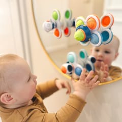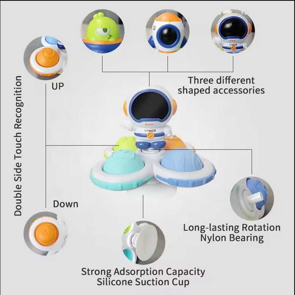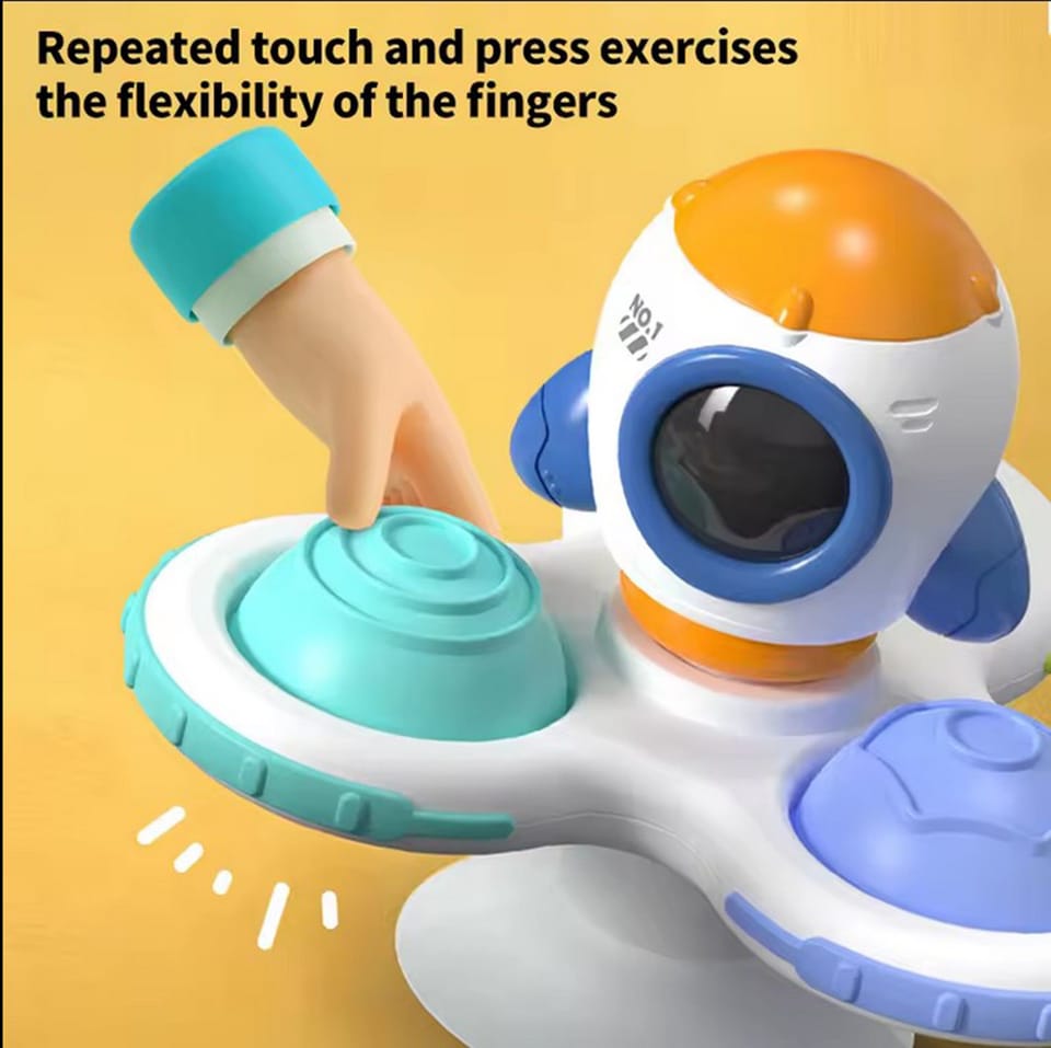 Zestaw Kosmicznych Spinnerów od marki WOOPIE zrobi na dziecku duże wrażenie. W zestawie znajdują się 3 szt. spinnerów: Kosmita, rakieta kosmiczna i kosmonauta. Spinnery dziecko może zabrać i przyczepić wszędzie dzięki gumowym przyssawkom. Można przyczepić spinnera zarówno do szyby w czasie podróży oraz do wanny podczas kąpieli (zabawkę można moczyć). Łożyska spinnerów gwarantują długotrwały obrót. Odczepiane elementy pozwalają na łączenie ich w dowolny sposób. Zabawki posiadają gumowe elementy o różnej powierzchni co rozwinie zmysły dziecka oraz zadziała odstresowująco. Zabawa ćwiczy zwinność rączek oraz poprawia koordynację ręka-oko. Te zabawki mogą działać jako narzędzie do relaksacji i redukcji stresu, pomagając w osiągnięciu stanu spokoju i wyciszenia.