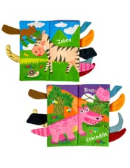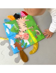 Książeczka z ogonkami zwierząt leśnych od marki Woopie idealna dla najmłodszych dzieci. Szeleszczące i bardzo miękkie w dotyku strony rozwijają zmysły maluszka pełniąc funkcję sensoryczną. Kolorowe ilustracje trenują wzrok i spostrzegawczość. W każdej ze stron wystają ogonki różnych zwierzątek, łapiąc za nię maluszek ćwiczy koordynację wzrokowo-ruchową. Książeczka może służyć jako zawieszka do wózka lub łóżeczka, mocowana na rzep.
