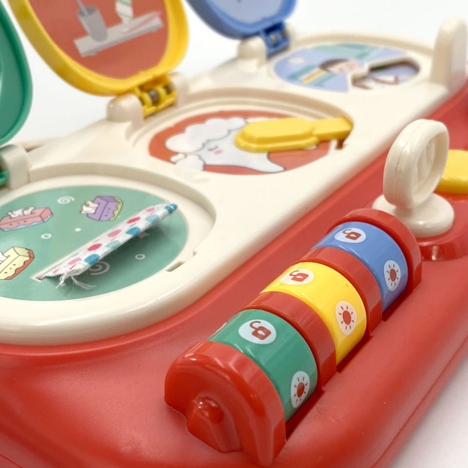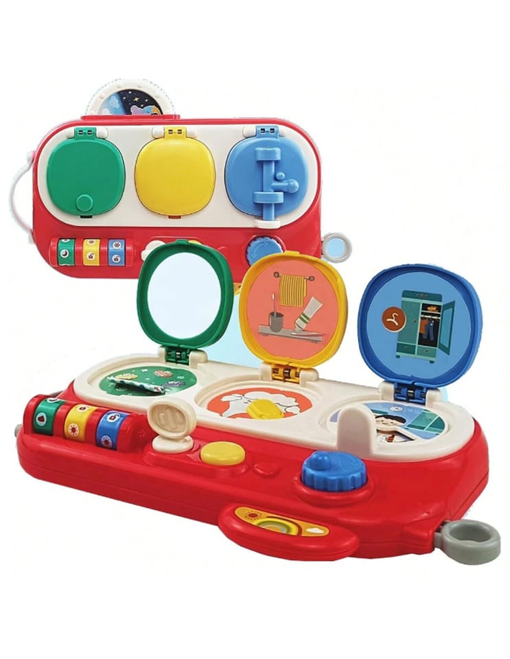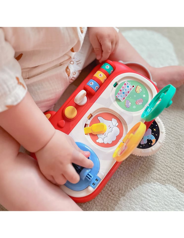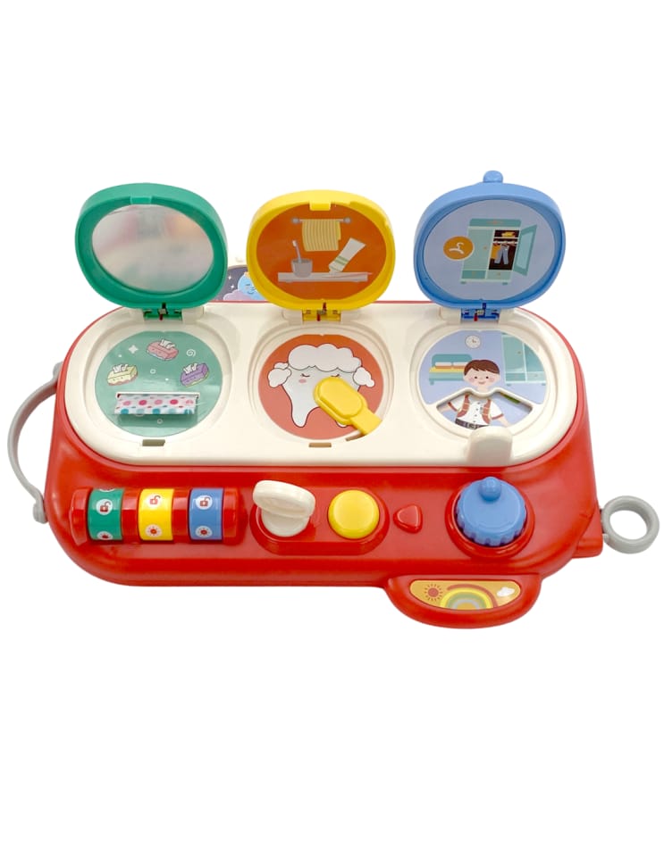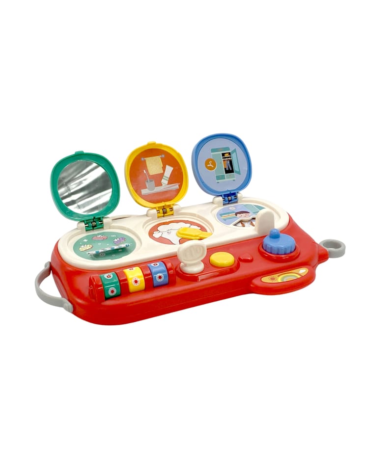 Dziecko odwraca, obraca, wciska i przesuwa różne elementy aby odkryć zawartość każdego okienka. Zabawka pomaga dzieciom rozwijać swoje umiejętności motoryczne, a także uczy je przyczynowo - skutkowego myślenia. Każda akcja ma konkretny efekt, co jest fascynujące dla młodych umysłów i zachęca do dalszej zabawy.